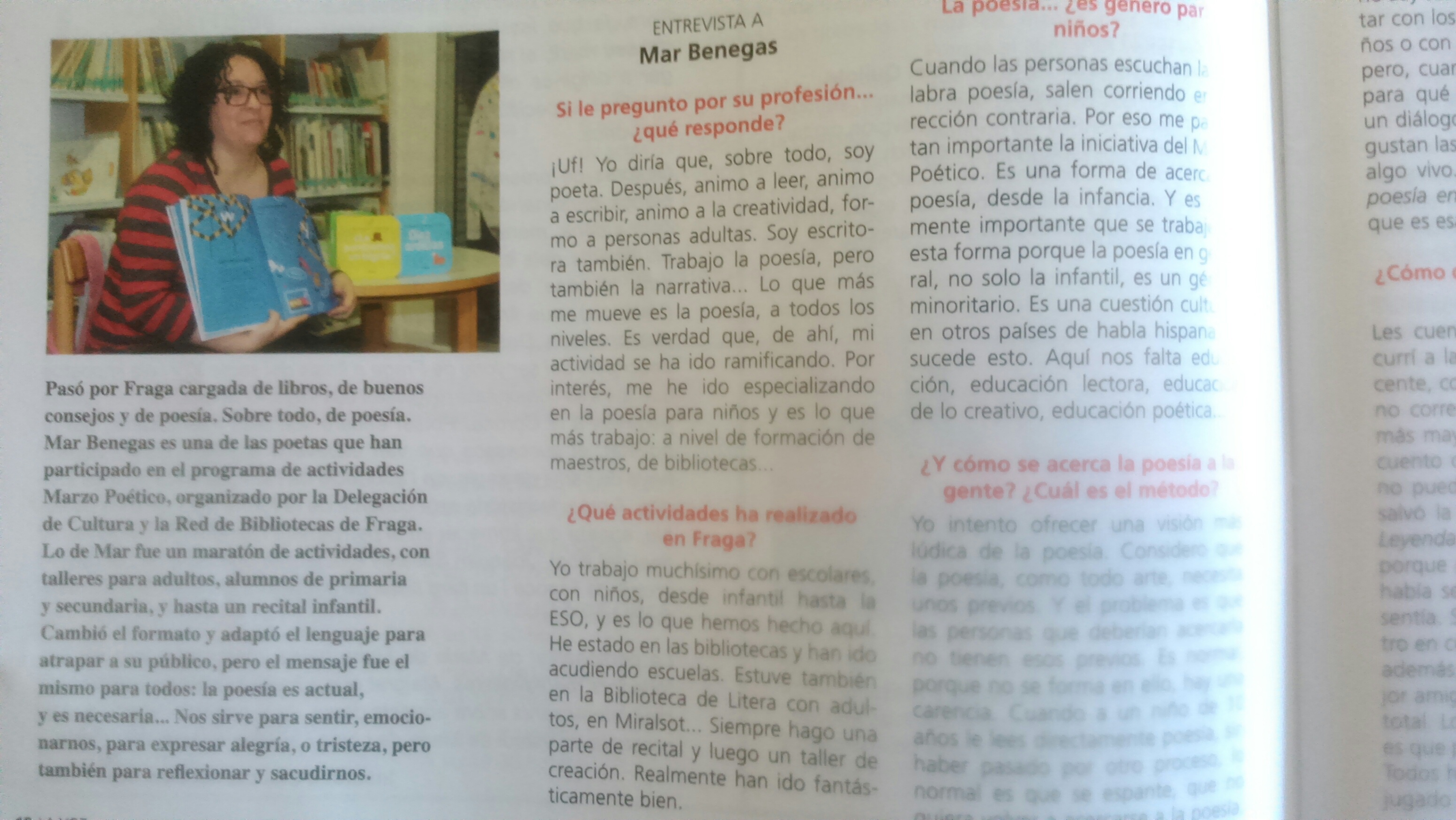 Lina, de La Voz del Bajo Cinca, estuvo conmigo casi todos los días que estuve por Fraga, en su Marzo Poético. Uno de ellos charlamos con tranquilidad, grabadora mediante. Las fotos son malas con ganas, y son mías claro. Pero igual algo se ve 😉