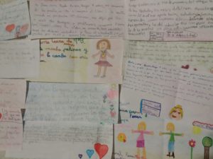 Hoy me he traído muchas cartas de la clase de 4º del CEIP Virgen de las Virtudes de Cox, de la clase de Maricarmen, que tan bien me ha cuidado y se ha preocupado para que todo estuviera estupendo y ha movilizado a toda la escuela y a medio pueblo para recibirme. Gracias, Maricarmen.